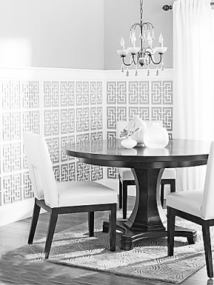 | 冷色调。夏日里最常用到的元素,墙面涂刷成湖蓝色,再配以复古怀旧造型的雕木护墙板,四壁中的留白令室内色彩看起来有变化,清爽的配色涂装出透气又凉爽的空间。 |