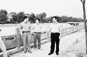 在鹿辛运河景观河西段治理工地,看到工人们正在忙绿地为河道旁的绿化带安装凉亭,杨廷俊说,景观河的绿化亮化设计不仅要好看,还要实用,要充分考虑到群众需要,要从人性化的角度出发,合理设计、科学规划,既能让老百姓看风景,还能让老百姓休闲娱乐。