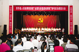 2011年7月8日,注定是一个令西华县检察院全体干警骄傲、自豪且难忘的日子:这天上午,省人民检察院、市委政法委、市检察院、西华县委在西华人民会堂隆重举行表彰大会,为荣获第四届“全国先进基层检察院”称号的西华县检察院庆功并授牌。