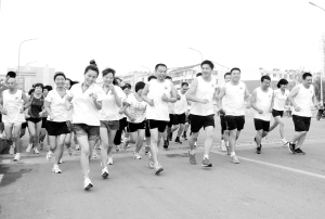 图② 昨日早晨,近百名市民在民政部门的组织下举行了一场长跑比赛。据了解,为提高全民健身意识,增强市民体质,市民政部门、长跑协会经常组织市民进行各项体育运动。 记者 李寒 摄