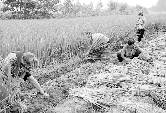 鹿邑县鸣鹿办事处赵楼村女青年张红霞经常收集市场信息,调查群众吃菜需求,与别人合作租赁90多亩土地种植家常必用菜——大葱。去秋今春,张红霞试种两茬,亩均收入达6000多元,被乡邻称为“种菜女能手”。图为出刨大葱的情形。 胡海云 胡洪涛 摄