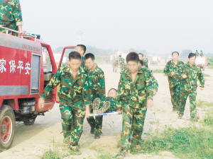 针对夏季高温易燃、火灾易发的实际情况,西华县人武部积极组织民兵开展消防应急救援训练,以实际行动保护群众的生命财产安全。图为民兵消防应急分队正在开展灭火救援训练。(李自强 摄)