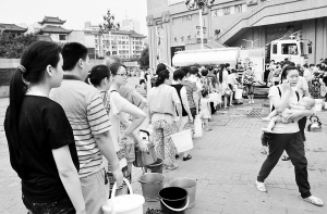 涪江绵阳段水质污染 消防部门应急送水 7月27日,绵阳市民在绵阳消防支队送水点排队打水。从7月26日晚开始,绵阳消防支队组织力量为群众送水,目前已出动48车次,为各单位、社区居民点等送水375吨,以解燃眉之急。四川省绵阳市政府26日发布通告,阿坝州松潘县一电解锰厂21日受暴雨影响,矿渣流入涪江,绵阳市26日监测出涪江江油、绵阳段水质锰和氨氮超标,提醒市民不要饮用自来水。