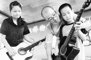 ▲扬州为农民工子女筑起“小候鸟之家” 7月26日,扬州两名农民工子女在“小候鸟之家”学习弹奏吉他。当日,江苏省扬州市双桥街道联合社会爱心人士筹建的“小候鸟之家”正式启用。“小候鸟之家”占地近400平方米,开设图书阅览室、琴棋书画活动室、运动健身室、青少年健康成长课堂等多个服务项目,主要为来扬州打工的农民工子女提供无偿服务,成为远离家乡的“小候鸟”结交朋友、增长知识、健康成长的乐园。