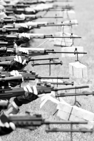 三伏练精兵 7月25日,武警沈阳支队一大队特勤中队狙击队员在进行悬挂重物跪姿狙击训练。武警辽宁总队沈阳支队一大队特勤中队是一支担负着狙击任务的精锐反恐部队。为了磨炼毅力、提高作战能力,每名战士都背负起超负荷的体能和技能训练的重任,每天都要进行10余小时的狙击训练、伏击训练、武装越野等军事科目。