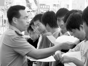 西华县人武部认真搞好兵役登记工作,为今冬征集优质兵员打下良好基础。图为该部人员深入复读生较集中的箕城高中校园进行宣传发动,接受复读生现场咨询登记。(李自强 摄)
