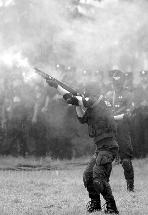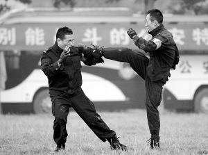 8月4日,西安市公安局特警支队的特警队员参加“夏季练兵”汇报演练。当日,包括陕西、甘肃、青海、宁夏、新疆、新疆生产建设兵团及5省区省会城市特警队参加的西北警务协作区公安特警队“夏季练兵”汇报演练活动在西安拉开帷幕。参演特警队员在汇报活动中演示了92式手枪、97式防暴枪互换,建筑物攻击战术以及摔擒技术等课目,充分展现了西北警务协作区公安特警队“夏季练兵”活动的成果及战斗实力。新华社发