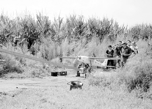 8月4日,无人机在弹射器上准备起飞。当日,在吉林省榆树市保寿镇南山村风灾现场,安华农业保险公司使用了遥控无人驾驶飞机,为榆树市广大农户进行农业保险灾害损失勘察。通过分析无人机航拍回的图像资料,保险公司可以更为准确地核定灾害损失,改变了原来通过地面人工勘察定损的方式,不仅提高了勘察效率,也大大降低了人为因素导致的定损结果的误差。