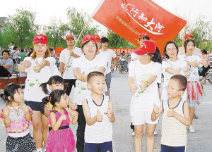 倡导生态环保,传承道家文化,促进天人和谐。近日,由20名大学生志愿者组成的河南省“行知大河”青少年生态环保实践团在老子故里鹿邑县开展了形式多样的生态环保宣传活动,呼吁民众提高环保意识,增强社会责任感,构建和谐社会。图为志愿者教小学生学习环境保护手语歌曲。(李明臣 蒋保庆 摄)