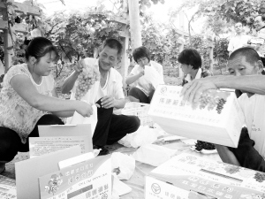 8月7日上午,商水县练集镇朱集村葡萄种植专业合作社的社员把葡萄装箱外运。该镇通过成立农民专业合作社,发展短平快致富项目,带领群众发家致富。(刘飞 阎自凯 摄)