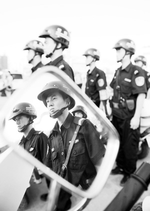 8月8日,巡警车队在银川市光明广场参加誓师大会。