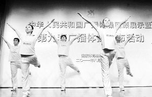 8月8日,北京体育大学师生在发布会上展示第九套广播体操。当日,中华人民共和国第九套广播体操在北京正式发布。1951年,中华全国体育总会筹备委员会联合国家有关部委发布了中华人民共和国第一套广播体操。60年来,广播体操已经成为最具中国特色的体育健身方法,成为普及面最广、深受人民群众喜爱的“国操”。新华社记者 公磊 摄