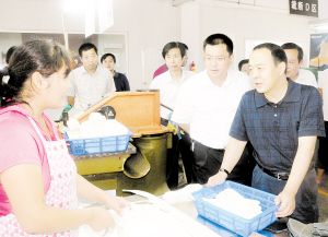 毛超峰先后到万果园农产品生产加工物流园区、河南佳利达纺织有限公司生产车间、河南春芝食用油项目、河南粤港玩具动漫产业园项目、中原泛家居产业园项目、商水成大鞋业有限公司生产加工基地,以及练集镇朱集行政村新型农村社区等处,仔细察看项目建设进度,询问生产经营状况,并与当地村干部共同探讨如何解决新型农村社区建设面临的资金难题。在河南粤港玩具动漫产业园项目工地,毛超峰认真听取情况介绍,叮嘱项目责任单位抓住机遇,加快建设。以生产各种功能鞋为主的商水成大鞋业,是我市一家承接产业转移的业内知名制鞋公司,目前第一批设备已安装完毕并开始试生产。毛超峰走进生产车间,看产品,问价格,与员工亲切交谈。他希望该公司用心选拔、培训骨干员工,并嘱咐员工好好工作,争取在家乡干出一番事业。