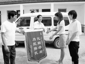 商水县袁老乡司法所按照“真正走近群众、真心倾听呼声、真情解决困难”的要求,力所能及地为群众排忧解难,受到群众好评。 8月9日上午,该乡关庙村群众夏宝营把锦旗送到乡司法所,感谢他们解决了自己与他人多年的矛盾纠纷。 (刘飞 张巧真 摄)