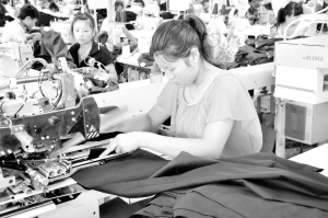 昨日,位于川汇区的台南制衣有限公司车间内,工人们冒着酷暑进行服装生产。(杨玉洁 常鸣 摄)