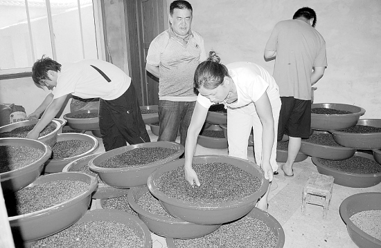 鹿邑县太清宫镇陈楼村农民闫建党发展庭院特种养殖,还帮扶带动300多户养殖户增收致富,被誉为庭院里的“土专家”、致富带头人。图为闫建党与家人查看饲养棚土元生长情况。 (满金玉 蒋保庆 摄)