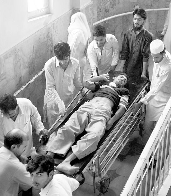 巴基斯坦一座清真寺遭袭击 至少50人死亡 8月19日,巴基斯坦西北部清真寺爆炸事件中的伤者被人们送进白沙瓦一家医院救治。巴基斯坦西北部一座清真寺19日遭到自杀式炸弹袭击,造成至少50人死亡、100多人受伤。这是巴基斯坦本月初进入斋月以来发生的最为严重的恐怖袭击事件。 新华社发