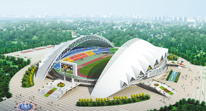 站在市体育馆的二楼平台放眼望去,只见6个建筑塔吊林立、机声轰鸣,20余辆运料卡车在工地上来回穿梭,几百名工人头戴安全帽、干劲十足……这是正在紧张施工的市体育中心二期工程——市体育场。据介绍,容纳3万名观众的市体育场占地360亩,由主体育场、室外田径训练场、培训中心等组成,建筑面积5.4万平方米,概算投资2亿多元,现已基本完成主体工程框架,预计2012年9月份可建成并投入使用。届时,全市人民期盼的周口市第二届运动会将在这里隆重举行。