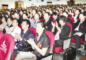 8月28日上午,在市三次党代会上,毛超峰同志所作的《科学发展 务实重干 为实现富民强市新跨越而努力奋斗》的报告引起了代表们热烈持久的掌声。(记者 王映 摄)