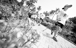 当日,海南省文昌市举行了一场越野行走比赛,近130名文昌市民组成了21支队伍,在八门湾绿道进行了4公里的越野行走比赛,体验绿色健身的乐趣。
