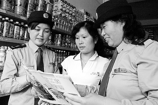 周口市工商局川汇分局执法人员深入商场、超市宣传《食品安全法》。近日,该局进一步加大食品市场监管工作力度,量化工作目标,严格责任追究,确保广大群众节日消费安全。(杨坤 摄)