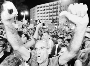 9月3日晚,约4万人在耶路撒冷市中心集会,抗议生活成本过高。新华社记者 尹栋逊 摄