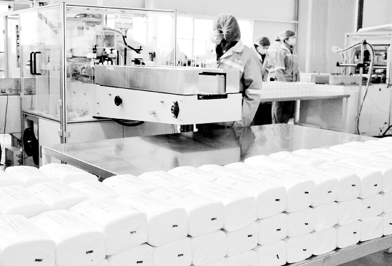 位于鹿邑县产业集聚区内的河南护理佳纸业有限公司年产10万吨高档卫生纸项目全部投产后,可安排本地就业人员2000余名,让更多的劳动者就近就业、在家门口安居乐业。图为生产车间。(记者 沈湛 摄)