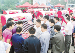 “双节”期间,鹿邑县财政部门积极组织“家电下乡”经营单位开展“团购回馈社会”活动,为广大教师、群众送上真诚的问候和超值的服务,受到了社会各界广泛好评。图为教师节当天,一“家电下乡”经营单位正在开展团购活动。(满金玉 蒋保庆 摄)