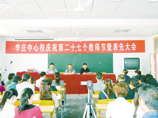 9月10日上午,川汇区李庄中心校隆重举行庆祝第27届教师节暨表彰大会,川汇区教体局部分领导和李庄居委会人员参加了会议。会上,川汇区教体局领导为李庄中心校上学年获奖教师颁发了奖品和奖状。(张永强 杨永华 摄)