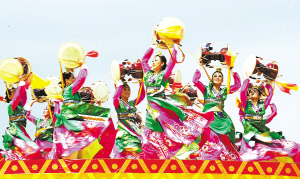 9月15日,第九届全国少数民族传统体育运动会民族大联欢活动在贵阳市观山湖公园举行。这是民族大联欢活动中的文艺表演。(新华社发)