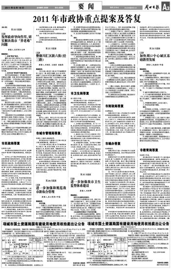 2011年市政协重点提案及答复