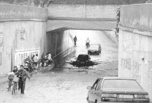 位于商水县汤庄乡政府所在地的一座铁路桥(上图),每逢阴雨天气,桥下积水深达1米多,给过往的行人和车辆带来了很多不便。离这座桥1公里左右的李庄桥(下图)却不一样,桥的进出口都建起了雨棚,杜绝了桥下积水现象。当地群众希望有关部门能够尽快解决此事,让居民雨天出行不再难。本报记者 摄