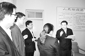 下图为省委政法委督查组对扶沟县人民法院练寺法庭干警进行提问和走访。