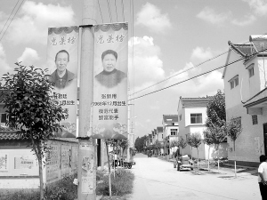 太康县独塘乡赵胡同行政村于2010年初召开村民代表会,采取无记名投票的方式,让村民选出村里的“模范代表”,并把选出的9名“模范代表”做成标牌悬挂在村中一条长近一公里的主干道上,让模范人物的先进事迹引领村民的生产生活。记者 张洪涛 摄