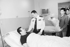 本报讯(记者 普淑娟 陈永团 通讯员 张超)9月26日下午,市政府党组成员、市公安局局长姚天民赴新疆,来到新疆医科大学第二附属医院,看望慰问在新疆执行抓捕任务中突发急病住院治疗的市公安局抓捕组民警关冲,并送上了鲜花及慰问金。