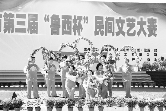 9月23日,项城市举行第三届民间文艺大赛,来自21个乡镇、办事处的78个民间文艺团体参加了比赛。 本次大赛内容丰富,有狮子、秧歌、高跷、戏曲等20多个项目,参赛人员既有该市群众,又有外县人员和梨园春擂主。大赛共评出特等奖12名,金奖20名。 (杨光林 薛建丰 摄)