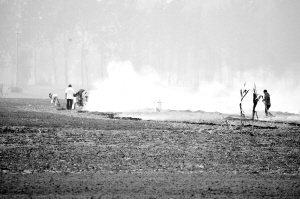 昨天记者到开发区、商水县、西华县进行明察暗访,沿途发现大部分地块已经整好地,有些农民正在趁墒播种。在开发区周庄,一位农民正在点火,记者问:“你们知道烧秸秆的危害吗?”这位农民说,他知道政府禁止烧秸秆,也知道烧秸秆是在污染环境,可是,烧秸秆是迫不得已的。放在路边影响走路,放在沟里影响排水,放在田里影响种麦,除了烧掉,没有任何用处。记者在现场观察了很久,没有见到基层干部的身影。