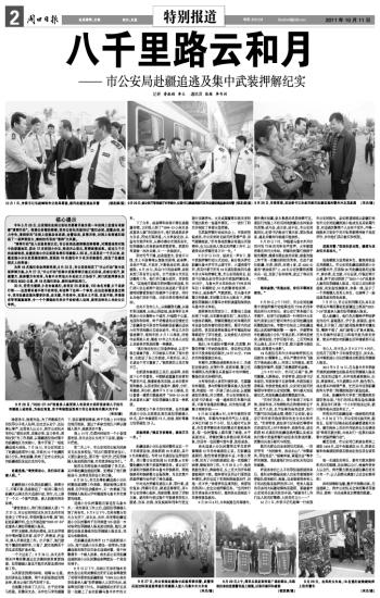 听到关冲在新疆追逃一线病倒的消息后。9月26日下午,市公安局长姚天民,副局长、纪委书记杨杰赶赴新疆看望慰问关冲。躺在病床上的关冲向姚局长主动请战说“我现在就出院,与战友们一起参加这次集中武装押解行动”。