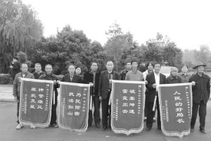 听说杀害自己儿子的罪犯被抓捕回来后,淮阳安岭镇程某家人自发带着锦旗和锣鼓队前来慰问、致谢。当亲眼看到杀害儿子的凶犯陈某被押回周口时,受害人程某的母亲刘大妈激动得热泪盈眶,紧握着市公安局局长姚天民的手说:“感谢你们,你们是人民的好警察,人民的好卫士……”