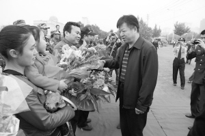 上午9时10许,市川汇区南广场,鲜花簇簇,人群沸动。市委常委、政法委书记朱家臣,市政府秘书长游保峰,市政协副主席杨春,市政府党组成员、公安局长姚天民等领导率领市公安局民警,举行盛大的迎接仪式,欢迎赴疆追逃民警凯旋归来。