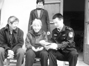 城北办事处92岁高龄的邵杨氏老人的户口因孩子分户时疏忽漏报,辖区民警郭东冉得知这一情况后,及时向社区警务大队负责人作了汇报,并着手补办相关手续。重阳节这天,老人的户口办了下来,民警把补办好的户口本送到邵杨氏手中。
