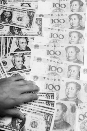 10月11日,山西侯马市一名市民在清点当日兑换的美元。