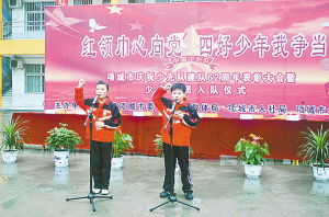 10月13日是少先队建队62周年纪念日。项城市认真组织小学生开展集体宣誓、集体签名等形式多样的教育活动,强化少先队员党、团、队相衔接的组织意识,激发他们对少先队组织的归属感和光荣感。图为项城市第二实验小学学生代表带领全体学生宣誓。(赵献伟 李健峰 田敏 摄)
