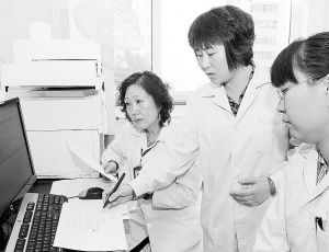 10月13日,中国疾病预防控制中心营养与食品安全所化学污染物监控室副主任苗虹(中)与同事一起分析研究食品污染物的问题。