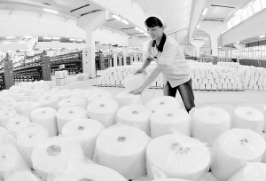 昨日,鑫达纺织印染有限公司员工在车间内整理纱锭。随着近年来国内国际纺织品消费量逐年提高,发展高档高支纱前景看好。我市作为河南棉花的主产区,发展纺织业拥有良好的基础,棉纺行业也有了长足发展。(记者 沈湛摄)