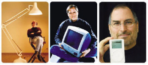 乔布斯在皮克斯获得广泛认可之后,在1996年重返当时业绩下滑非常严重的苹果。在他的领导下,苹果在1998年5月6日发布了首款iMac。iMac成为了1998年美国市场最畅销的电脑。iMac独特的一体化设计完全符合最初的Mac设计思路,并开始采用不同颜色的机箱外观,iMac的色彩和外形深受消费者的喜爱,iMac让单调沉闷的米色或黑色电脑机箱成为历史。正是这样的设计挽救了当时苹果岌岌可危的声望和品牌。值得一提的是,iMac也是第一个用光驱完全取代3.5英寸软驱的电脑。