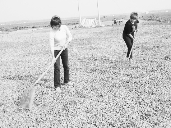 商水县舒庄乡杜店村村民正在晾晒花生。今年秋季,该乡采取土地连片转租方式建立7000亩无公害花生生产基地,集中种田能手承包种植花生。据了解,今年花生亩均产量255公斤,亩均收入达到1400元。(乔连军 摄)