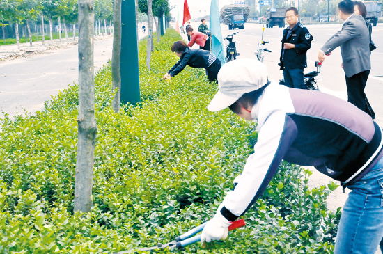 昨日下午,40名园林工人在周口大道周淮路北马庄附近进行一次别开生面的修剪技能比赛。此次比赛由市总工会、市人力资源和社会保障局、市城市管理局共同组织开展,旨在激发职工学技术、练技能的热情,促进职工技能水平和城市绿化养护管理水平的提高。(记者 王映摄)