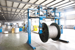 阳光电缆和河南联通联合重组后,年生产能力达到100万纤芯公里,成为长江以北规模最大、技术含量最高的光缆生产企业。图为现代化生产车间。