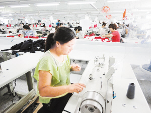 周口台南制衣是川汇区引进的台湾独资企业。图为企业生产加工车间。
